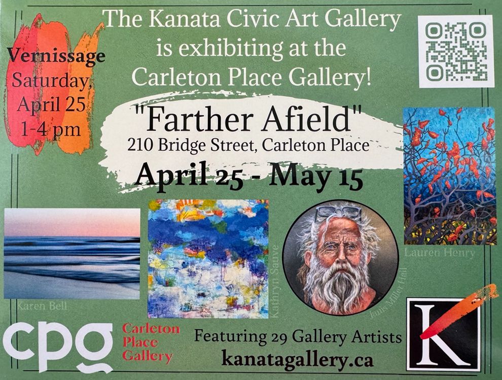 Gallery artists are away from home April 25 to May 15. Visit them in Carleton Place for a special exhibit, ‘FARTHER AFIELD’ at the Carleton Place Gallery. Vernissage – Saturday, April 25.